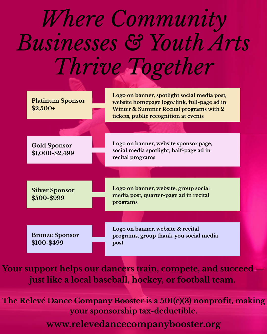 Email us at Fundraising@relevedancecompanybooster.org with questions.